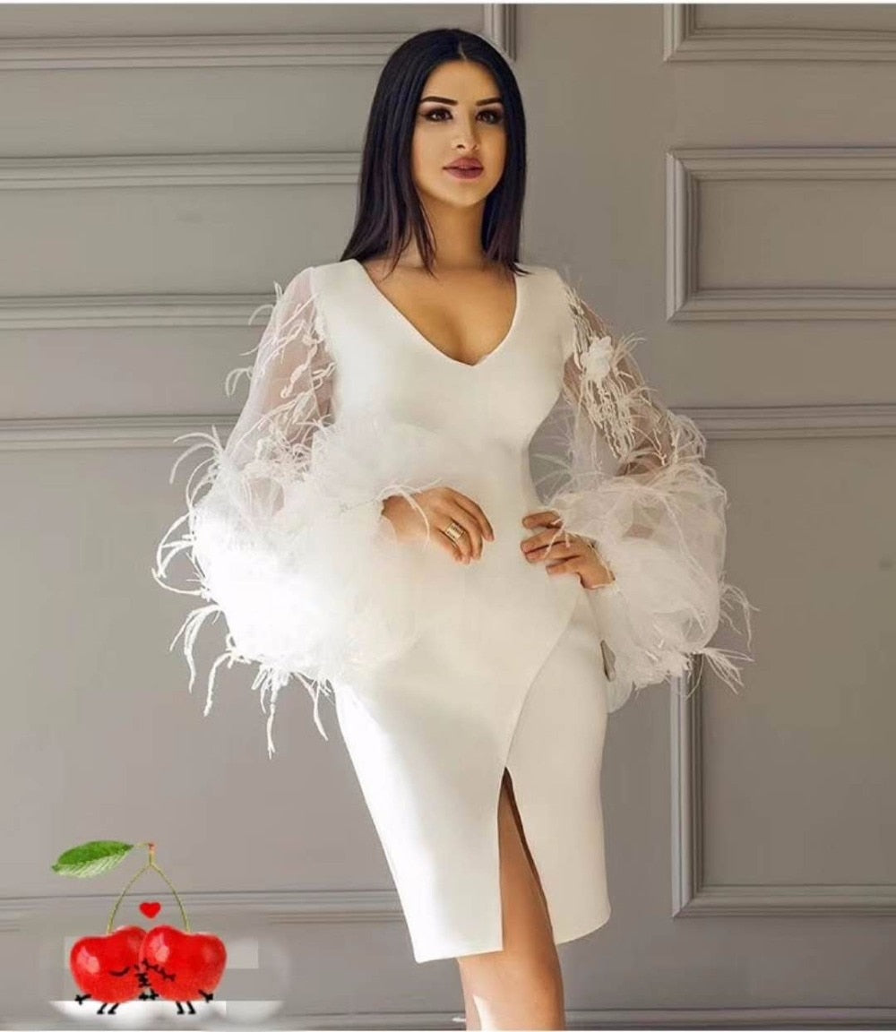 DEIVE TEGER Lantern Sleeve Tassels & Feathers Dress.